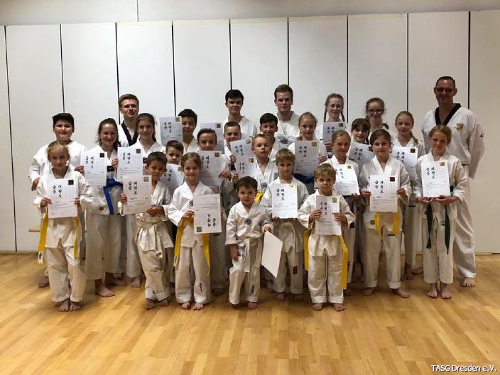 ...das jährliche Ereignis vor den Sommerferien, an dem unsere großen und kleinen Sportler ihr Können in verschiedenen Disziplinen wie Selbstverteidigung, Formen oder dem Ilbo-Taeryon (Ein-Schritt-Kampf) unter Beweis stellen. Nach nervenaufreibenden, anstrengenden 3 Stunden haben alle Sportler wohlverdient bestanden und konnten sich glücklich ihre Urkunde abholen.